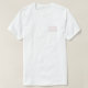 Camiseta para uma empresa de limpeza ou serviço de limpeza de casas. O nome da sua empresa está impresso no peito esquerdo da t-shirt e a parte de trás da peça de vestuário apresenta o nome da sua empresa juntamente com um gráfico de pulverização. O texto e o gráfico estão em cor-de-rosa empoeirado. Seja inteligente e profissional e aumente a visibilidade marca de seu negócio de limpeza.