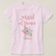 Uma adorável lembrança para a sua Madrinha de casamento no seu casamento, esta camisa cor-de-rosa exibe "Madrinha de casamento" escrita no topo com uma fonte rosa e divertida. Embaixo está um buquê de flores rosa e azul com seu nome personalizado no fundo. Faça seu pedido hoje mesmo! Trabalho de arte do buquê criado por: AMBilustrações http://www.etsy.com/shop/AMBillustrations/
