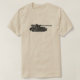 Camiseta legal impressa com um tanque militar do exército, preenchida com a linguagem do alfabeto fonético.