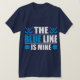 A camiseta da Linha Azul de Hockey contém pincéis azuis e bastões de hóquei com texto branco e azul que lê A Linha Azul é Minha.