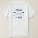 Camiseta desportiva para remadores, com a opção de acrescentar texto à frente - nome ou iniciais, por exemplo. Ou exclua isso se preferir uma frente simples. No verso, há remos cruzados em marinho com a legenda "COMBOIO PARA WIN".