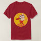 Ilustração bonita com uma criança dançando a dança do leão para o Ano Novo Chinês + "Felicidade de Ano Novo" em Chinês para pequenos círculos vermelhos + florescimento amarelo como fundo. Design na camiseta cardeal masculina.— "As cores a serem evitadas como presentes chineses de ano novo = qualquer coisa em preto ou branco - preto funerário e branco são cores importantes usadas em um funeral chinês. Ao escolher presentes de Ano Novo Chinês, você deve desistir dessas duas cores tabu." (site: travelchinaguide. - ligação a: essenciais - férias - ano novo - presentes-tabus)