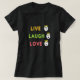 Live Laugh Love expression illustrated with the words plus faces - living, laughing and loving. A fun design to smile along with.