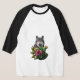 Camiseta Básica, Mangas Raglan 3/4, Branco/Preto, Adulto M