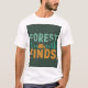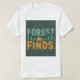 Uma design de camiseta vibrante e divertida com o texto "Localizações da Floresta" em uma letra corajosa, com criaturas florestais lúdicas como esquilos e veados espiando pelas bordas