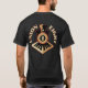 A camiseta escura dos homens do logotipo da assinatura da união oito com a caixa pequena do logotipo e grande parte traseira do logotipo.