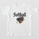 Apresentado é um logotipo Softball e luvas Softball pretas e marrons.