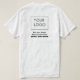Personalizável e fácil de editar t-shirt com o logótipo e informações da sua empresa personalizada. t-shirt do promocional sem pedido mínimo com o logótipo, slogan, número de telefone. Empresa, pequena empresa, moderna troca de promocionais. Camiseta de logotipo personalizado para pequenas empresas com texto branco