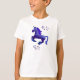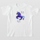 Este unicórnio azul de desenho está correndo entre as estrelas. A cabeça é ligeiramente virada para o espectador, com as pernas enroladas debaixo do galope do médio. imagem ©T.A.Paxton com estrelas por hawksmont. Totalmente personalizável, mas limitado a t-shirts claras porque o azul é um pouco escuro e se mistura às camisas mais escuras.