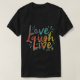 Amor Ria Ao Vivo. Espalhe positividade com esta camiseta vibrante! As palavras "Love, Laugh, Live." são exibidas em uma alegre variedade de cores, cada palavra entupindo com uma tonalidade divertida. Esta design é perfeita para quem quiser expressar sua visão otimista da vida.