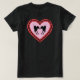 Uma silhueta italiana de Greyhound, toca arco, em um coração rosa e vermelho com estampas pretas.