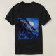 Camiseta Lua sobre abetos de neve e costa marítima à noite