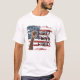 Camiseta Lutar Lutar Lutar. © Camisetas & Suéteres na Zazzle. Esta camiseta tem uma imagem estilizada de uma bandeira dos EUA rasgada, um punho cerrado e as palavras Lutar Lutar Lutar nela - representando Donald Trump e suas ações corajosas após ser baleado em Butler.