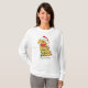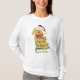 Um rabisco de Ouro de Cartoon Personalizado, Puppy vestindo "Esta é a estação" chapéu de Papai Noel, embrulhado em luzes de natal.