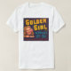 A ouro Girl Apples é uma etiqueta de caixa de safra de 1953. Uma garota com as palavras "Ouro Rapariga Apple" ao lado.