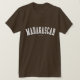 Verifique para fora este t-shirt de Madagascar! É você de Madagascar? Você tem um amigo ou um membro da família que amem Madagascar? Em caso afirmativo, este t-shirt da "bandeira" é exatamente o presente que você está procurando! As características de design "Madagascar" na rotulação branca arqueada na pia batismal clássica da faculdade.