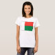 A frente desta t-shirt exibe corajosamente a bandeira malgaxe com a sua branca distinta, vertical, ao lado das bandas horizontais vermelhas e verdes. Isso é combinado atrás por um mapa atraente de Madagascar.