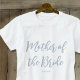 Faça a Mamãe se sentir especial com uma camisa de casamento personalizada! Um design sofisticado com a frase "Mãe da Noiva" em uma fonte de letra estilosa, e personalizado com um nome, data de casamento, local ou qualquer texto que você escolher. Perfeito para festas de despedida de solteira, chás de panela ou um fim de semana de casamento divertido — é um presente atencioso e elegante que a sua Mãe vai amar! Cores do modelo impresso: azul poeira em branco.