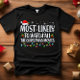 Engraçado Adulto Correspondendo Camisetas Familiares. Vista no Natal, Festa de Natal, ou dê como presentes. Unisex Tshirt. Camisetas de alta qualidade vêm na sua escolha de várias afirmações do tipo "Mais Provável". A família de Natal vestida A - mais propensa a decorar no Natal em outubro B - mais propensa a assistir aos filmes de Natal C - mais propensa a comer todos os cookies D - mais propensa a sacudir os presentes E - mais propensa a estragar os Netos F - mais propensa a jogar vídeogames no Natal G - mais propensa a tomar muitos FOTOS H - Provavelmente ACORDAR NO PRIMEIRO NATAL DA MANHÃ J - Provavelmente sendo o último K - mais propensa a BEBER TODO O VINHO