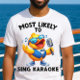 Esta engraçada design de pato de cruzeiro "Mais Provável a Sing Karaoke" é perfeita para camisas de cruzeiro! Excelente para viagens de família/amigos e cruzeiros de grupo!