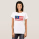 A frente desta t-shirt exibe corajosamente a bandeira malaia com as suas riscas distintivas, vermelhas e brancas, de crescente amarelo e estrela sobre o cantão azul. Isso é combinado atrás por um mapa atraente da Malásia.