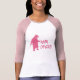 Camiseta feminina mangas raglan 3/4 da Bella+Canvas, Branco/Cor-de-rosa, Adulto P