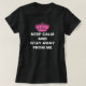Camiseta divertida para mulher com a frase keep calm cor-de-rosa e preta. Esta camiseta keep calm and stay away from me cor-de-rosa e preta tem uma coroa cor-de-rosa e você pode mudar o estilo da camiseta, cor, estilo do texto e cor simplesmente escolhendo o botão "Personalizar!". Por favor, note que todas as camisetas, adesivos, cartões e convites, etc., que você encontrar no Zazzle são estampas impressas, sem joias, laços, relevos, ou peças ou partes adicionadas.