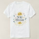 Design de rabiscos com um sol sorridente e a mensagem "Permaneça Positivo". Um tee motivacional alegre e animador.