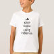 Mantenha a calma e o amor personalizáveis da VIRGINIA Edite este modelo de design - CRIE o TEXTO. Personalize-o para fazer a camiseta das crianças exclusivamente sua!