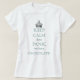 Um giro divertido na frase Mantenha a calma... junto com uma imagem vintage de uma coroa real. A frase Keep Calm and Carry On foi de um poster de propaganda produzido pelo governo britânico em 1939 durante o início da Segunda Guerra Mundial, destinado a elevar a moral do público britânico em caso de invasão. Vendo apenas um número limitado desses posters foi distribuído, a frase era pouco conhecida. Tudo isso mudou, porém, quando a poster foi redescoberta em 2000 e foi reemitida por várias empresas privadas e usada como tema decorativo para uma série de outros produtos. Só existiam dois exemplos conhecidos de sobreviventes da poster fora dos arquivos do governo[1] até que uma coleção de cerca de 20 originais foi trazida para o Roteiro Antiques em 2012 pela filha de um ex-membro do Corpo de Observadores Reais