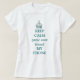 Fique Calmo. Um giro divertido na frase Mantenha a calma... junto com uma imagem vintage de uma coroa real. A frase Keep Calm and Carry On foi de um poster de propaganda produzido pelo governo britânico em 1939 durante o início da Segunda Guerra Mundial, destinado a elevar a moral do público britânico em caso de invasão. Vendo apenas um número limitado desses posters foi distribuído, a frase era pouco conhecida. Tudo isso mudou, porém, quando a poster foi redescoberta em 2000 e foi reemitida por várias empresas privadas e usada como tema decorativo para uma série de outros produtos. Só existiam dois exemplos conhecidos de sobreviventes da poster fora dos arquivos do governo[1] até que uma coleção de cerca de 20 originais foi trazida para o Roteiro Antiques em 2012 pela filha de um ex-membro do Corpo de Observadores Reais