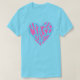 Esta design apresenta uma frase encorajando alguém a lavar as mãos em um coração azul e rosa.
