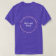 Marca comercial em texto de padrão redondo em t-shirt roxa personalizável. Personalize-o carregando o logotipo da sua empresa, digitando seu nome e endereço da empresa. Você pode incluí-lo em seus produtos de promocional, oferecer itens ou presentes aos seus clientes ou clientes, uma estratégia de marketing para anunciar sua empresa ou promover sua marca. Camiseta personalizável que você pode usar para criar reconhecimento de nome de marca. Verifique a aparência após carregar o logotipo e digitar o texto. Se a aparência lhe agrada, você pode colocar seu pedido agora. Se precisar redimensionar e reposicionar o logotipo e o texto, ajuste na ferramenta design.