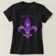 Esta camisa é perfeita para celebrar Mardi Gras ou Fat Terça-feira. Apresenta um design central colorido de uma Fleur de Lis nas tradicionais cores Mardi Gras de verde, mauve e Dourado.