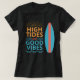 Sinta a onda de boas vibrações com esta camiseta feminina personalizável com tema de praia. Com tipografia em negrito que diz “High Tides and Good Vibes”, uma prancha de surf colorida, detalhes de ondas divertidas e um toque de sol, este design captura o espírito de viver na costa. Se você está procurando uma camiseta de férias exclusiva ou um presente perfeito para alguém que adora surfar e pegar ondas no oceano, este design vai adicionar um toque de personalidade ao guarda-roupa de verão. Personalize os três espaços de texto com sua própria frase para criar seu design único.