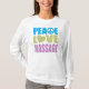 Massagem do Amor pela Paz... O que mais você precisa na vida? Presente perfeito para qualquer viciado em massagens. Não importa se você é um massagista profissional treinado, você dá o melhor tapete de costas, você está estudando/treinando para se tornar um massagista ou um fisioterapeuta, ou você só ama fazer massagens...você é viciado em massagem! Engraçado ideia de presente para qualquer amante de massagens. Excelente para qualquer massagem diva. Design apresenta um coração e um sinal de paz. Veja nosso compro por um Amor de Paz mais divertido e único...camisas e presentes.