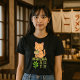 Um gato bonitinho no estilo de anime japonês cheira a chá e um gráfico de folhas de chá verde cultivadas em forma de sombra que o matcha é feito. Você pode personalizar o texto "MATCHA CAT" assim como a palavra kanji japonesa para matcha (茶 抹).
