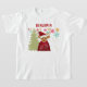 Trendy Christmas T-shirt featuring an adorable cute red nosed reindeer wearing a Santa hat, and a scarf, surrounded by colorful snowflakes and a Christmas tree. Personalize the text by adding your kid's name.