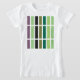 Padrão geométrico linear, retangular, listrado de matizes pretas, roxas e verdes.