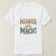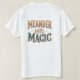 A design de "Meander into Magic" apresenta a frase feita em uma tipografia caprichosa e multicolorida que evoca um senso de maravilha e encanto. As letras são estilizadas para se assemelharem a uma escrita divertida e à bolha, acrescentando-se à atmosfera iluminada e mágica.