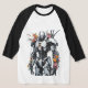 Camiseta Básica, Mangas Raglan 3/4, Branco/Preto, Adulto M