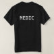 T-shirt com parte traseira da palavra MÉDICO sobre e a caixa esquerda dianteira