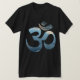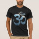 Frente e Traseira Om Mantra Dourada Meditação Sun Azul Yoga Ver Símbolo de Malhação Inspiracional Asana Modelo Elegante Camisa Negra Básica de Bella Men.