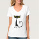Esta design de camiseta V-neck das mulheres personalizada apresenta um meio século preto "atômico" moderno retrô com grandes olhos amarelos e uma cauda encaracolada. Você pode mudar facilmente a ortografia do texto; estilo, cor e tamanho da fonte com o botão Personalizar Zazzle.