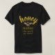 Camiseta engraçada de apicultor com o texto 'Mel faz o mundo girar' em uma escrita elegante amarela brilhante e tipografia moderna com uma imagem vintage de abelha de mel e um toque na moda de talão de ouro sutil. Concebidos exclusivamente para apicultores e amantes do mel pelo Happy Dolphin Studio. Se precisar de ajuda ou de produtos correspondentes, entre em contato conosco em happydolphinstudio@outlook.com.