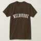 Verifique para fora este t-shirt de Melbourne! É você de Melbourne, Austrália? Você tem um amigo ou um membro da família que amem Melbourne, Austrália? Em caso afirmativo, este t-shirt da "bandeira" é exatamente o presente que você está procurando! As características de design "Melbourne" na rotulação branca arqueada na pia batismal clássica da faculdade.