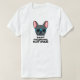 Esta camiseta de buldogue francesa faz o Dia de os pais perfeito ou presente de aniversário para qualquer Pai francês. A design apresenta um estilo de desenho ilustrativo de um buldogue francês de cor azul vestindo óculos de sol com a frase "O melhor Pai de francês de todos!"