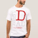 Não espere Dia de os pais para comemorar seu pai. O ano todo, há várias ocasiões para expressar seu amor a ele. Então, aqui está um design de "Melhor Pai", em cores vermelho e prateado, para uma camiseta branca masculina. Nós usamos uma fonte muito moderna para este texto, colocamos "MELHOR" verticalmente, e usamos um "D" vermelho grande para o pai. Você encontrará um nome personalizável na parte inferior escrito em uma fonte vermelha pontilhada moderna. Por favor, substitua o nome padrão pelo nome desejado ou sinta-se livre para excluí-lo.