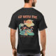 This is a design of the written words LESSONS LEARN at the front and the written words GO WITH THE FLOW at the back with water and men surfing with quote below.