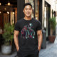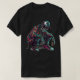 Camiseta Mendigo Esqueleto Agachado. © Camisetas & Suéteres na Zazzle. Esta camiseta tem um mendigo esqueleto agachado com um boné e óculos de sol.